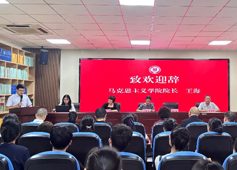 学院院长王海在致辞中对全体新生提出殷切期望。他强调,作为新时代研究生,一要善思而悟,做到真学真懂。在百年变局与科技变革中,马院学子要做到真学真懂,以经典方法论应对时代变迁,从而实现创新发展;二要脚踏实地,做到笃行真用。“知者行之始,行者知之成”,成功源于点滴积累与不懈坚持。马院有着丰富的课程体系、创新的社会实践、前沿的讲座论坛等活动,着力助大家拓展视野、提升能力,增强未来适应力与职业韧性;三要坚定信仰,真信而无畏。习近平总书记在纪念中国人民抗日战争暨世界反法西斯战争胜利80周年大会上号召弘扬伟大抗战精神,我院学子更要以抗战精神铸魂,将信仰化为奋进力量,勇担强国建设使命。