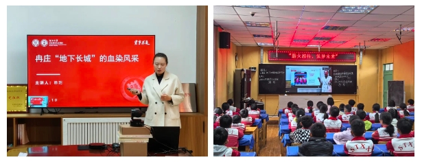 韩玥以“冉庄‘地下长城’的血染风采”为主题,讲述了冉庄地道战中军民一心、浴血奋战的悲壮事迹。通过生动的历史细节,让同学们深刻感受到革命先辈不畏强暴、血战到底的英雄气概。同学们屏息凝神,眼神中充满了对先辈的敬仰。