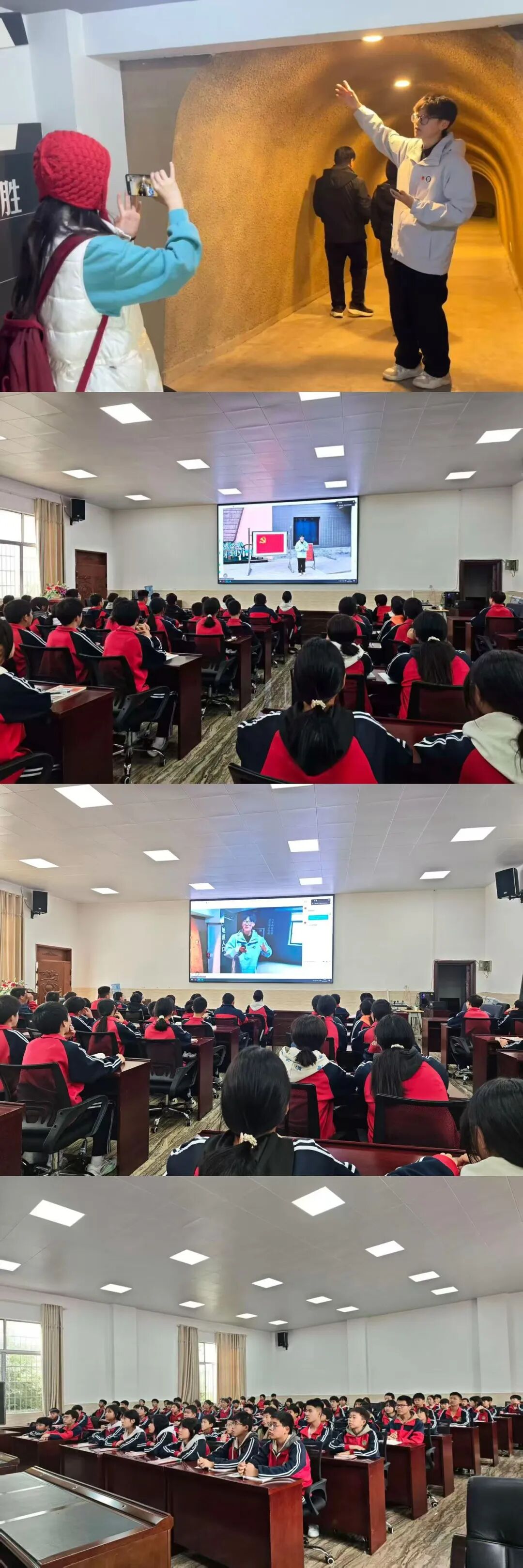 活动中,河北大学师生在纪念馆讲解员的引领下,沉浸式回顾那段烽火连天的斗争岁月。河北大学第19届研究生支教团成员王薪智与院研究生会新媒体运营中心成员开启直播主持,以镜头为“眼”,细致呈现纪念馆的实景全貌与珍贵历史细节。远在千里之外的沙陀学子跟随镜头,同步“走进”冉庄,聆听那段智慧与勇气交织的地道战故事,真正实现了大中小学思政教育资源的实时共享与一体化贯通。