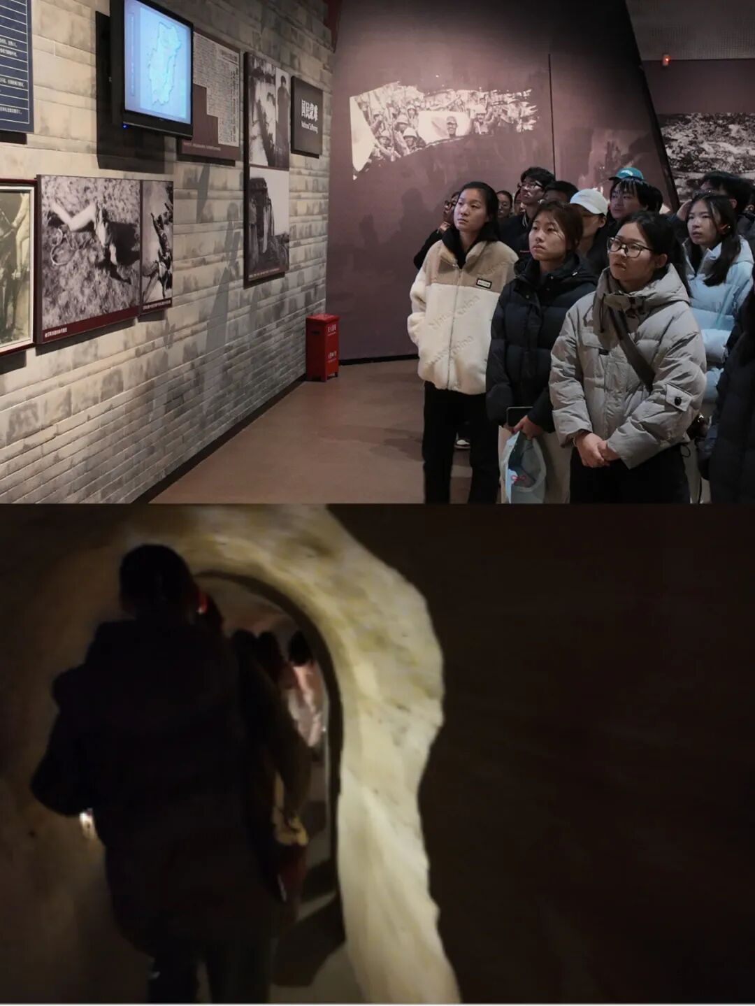 在集中讲解环节结束后,师生们进入自由探索阶段。他们实地观察地道构造,近距离感受各类红色文物与村庄风貌,在沉浸式体验中深刻领悟革命先辈坚定的理想信念与不屈的斗争精神。