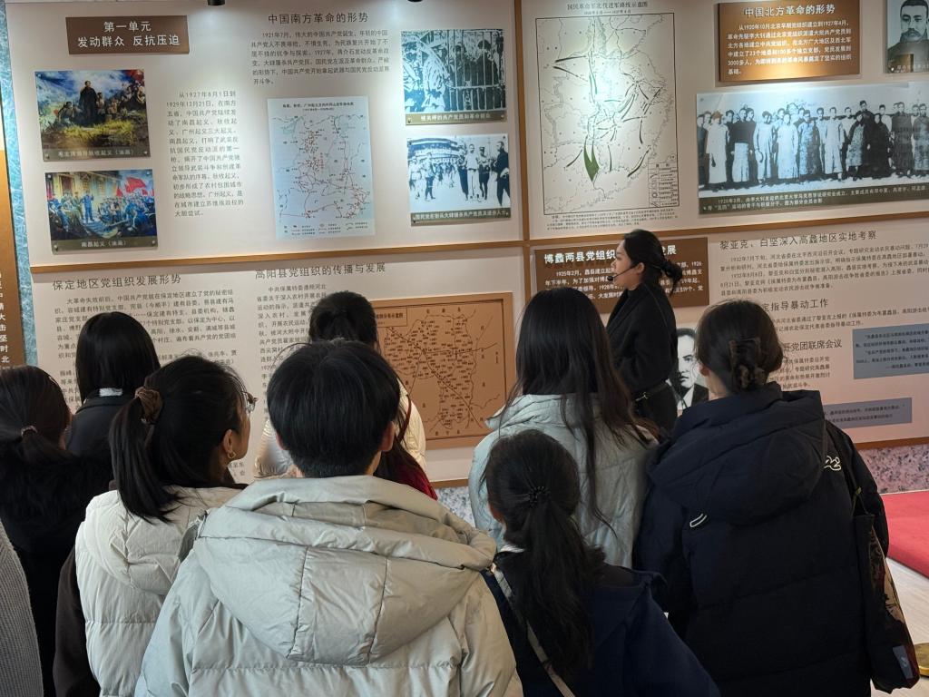 11月14日下午,马克思主义学院2025级全体同学,在马克思主义基本原理教研室六名教师的带领下,赴高阳县“大思政课”实践教学基地,跟随高阳县文广旅局工作人员的讲解,开展了一次内容充实的主题实践教学活动。