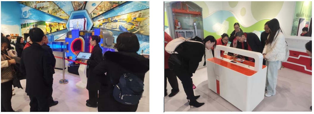随后,师生们前往中国核工业科技馆进行参观学习。这座坐落于原子科学城的教育基地,曾见证7位“两弹一星”功勋奖章获得者和60余位两院院士的奋斗历程。在“中国核工业”主展厅,从“一颗石头”到“人造太阳”的展陈脉络,清晰呈现了我国核工业70余年从无到有、从弱到强的发展史诗。师生们驻足凝视老式计算器、泛黄的记录手稿等珍贵实物,仿佛穿越时空触摸到前辈科研工作者的奋斗轨迹,深切体悟到 “以算盘推演核心数据、用笔墨勾勒攻坚蓝图” 的不朽传奇,更被其背后蕴含的“自力更生、艰苦奋斗”的坚韧品格深深震撼。展厅内,“事业高于一切、责任重于一切、严细融入一切、进取成就一切”的醒目标语,与“热爱祖国、无私奉献,自力更生、艰苦奋斗,大力协同、勇于登攀” 的“两弹一星”精神形成深刻呼应。师生们在沉浸式参观中深刻领会到,家国情怀是“两弹一星”精神一脉相承的核心要义,更直观认识到核工业作为国家安全战略基石,在筑牢国防屏障、赋能民生发展、推动科技自立自强中的关键作用,进一步激发了胸怀家国、勇担使命的责任担当。