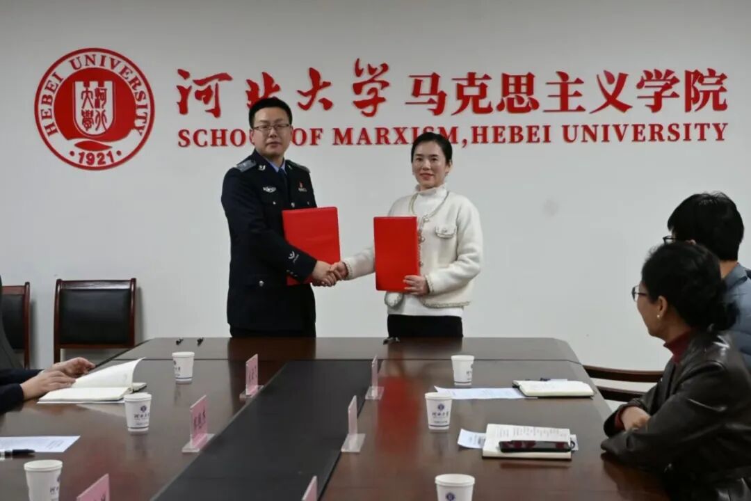 河北大学马克思主义学院团委与中央司法警官信管系团委学科特色鲜明,优势互补。值此“十五五”规划开局之年,此次签约标志着两校院系在深化协同育人上迈出坚实一步,实现了“思政引领”与“数智赋能”的双向奔赴。双方将以团建联建为纽带,积极探索新时代高校共青团协同育人新路径,让“红研”与“藏蓝”共融,共育堪当民族复兴重任的时代新人。