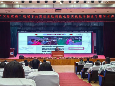 其次,柴素芳教授以《“大思政课”背景下高校思政课微电影实践教学探索》为主题做专题报告。她从微电影实践教学的重要性切入,以强烈的问题意识,分析了“大思政课”研究的重要时代背景,解读了“大思政课”的多重内涵,指出“大思政课”建设本质上要围绕思政课进行改革创新,强调要在“大”上做文章,将思政小课堂与社会大课堂相结合,上好思政课。柴素芳教授结合自身丰富的思政课微电影实践教学经验,从开课背景、课程目标、发展历程、解决难题、教学环节、四项要求、发展前景等方面进行了系统讲述。她阐述了如何通过微电影拍摄过程夯实思政课的实践教学环节,带领学生把理论化为行动,在体验愉悦、创造幸福的同时,也成为马克思主义理论和新思想的传播人。