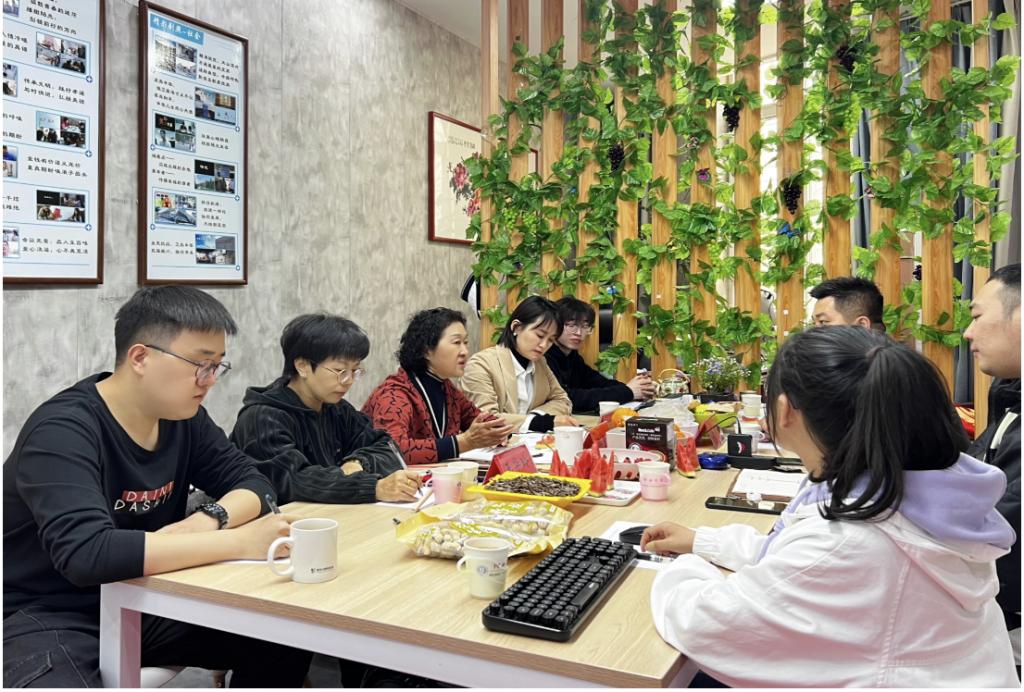 首先,虚拟教研室骨干学生韦宇婷围绕基地展板设计的基本内容和修改情况进行汇报,相关教师对基地展板的整体内容设计进行指导;其次,与会师生围绕基地展板的外形设计和呈现效果进行充分研讨,确定了展板内容设计的人员分工,制定了微电影教学基地的参观路线,规划了基地建设的总体轮廓;最后,王华玲老师针对虚拟教研室平台的“教学资源”与“教研资料”部分提出修改意见,她指出要不断丰富平台资源的多样性,稳步提升相关数据的各项排名。