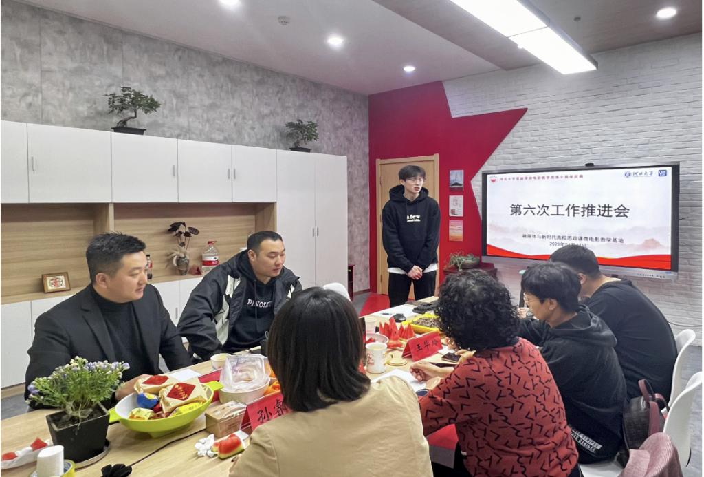 为深入贯彻党的二十大精神,认真落实习近平总书记关于“大思政课”建设的重要讲话精神,深刻总结河北大学思政课微电影实践教学改革经验,进一步推动新时代高校思政课改革创新,推进“河北大学思政课微电影实践教学改革十周年庆典”筹备各项工作,2023年4月23日,“思想政治理论课社会实践虚拟教研室”在河北大学“融媒体与新时代高校思政课微电影教学基地”召开了第六次前期工作推进会。会议由河北大学“幸福微影社”办公室主任肖敬寒主持。虚拟教研室负责人柴素芳教授、骨干教师王华玲副教授、双创中心孙睿迪老师、艺术学院马野超老师以及学生代表共10人参会。