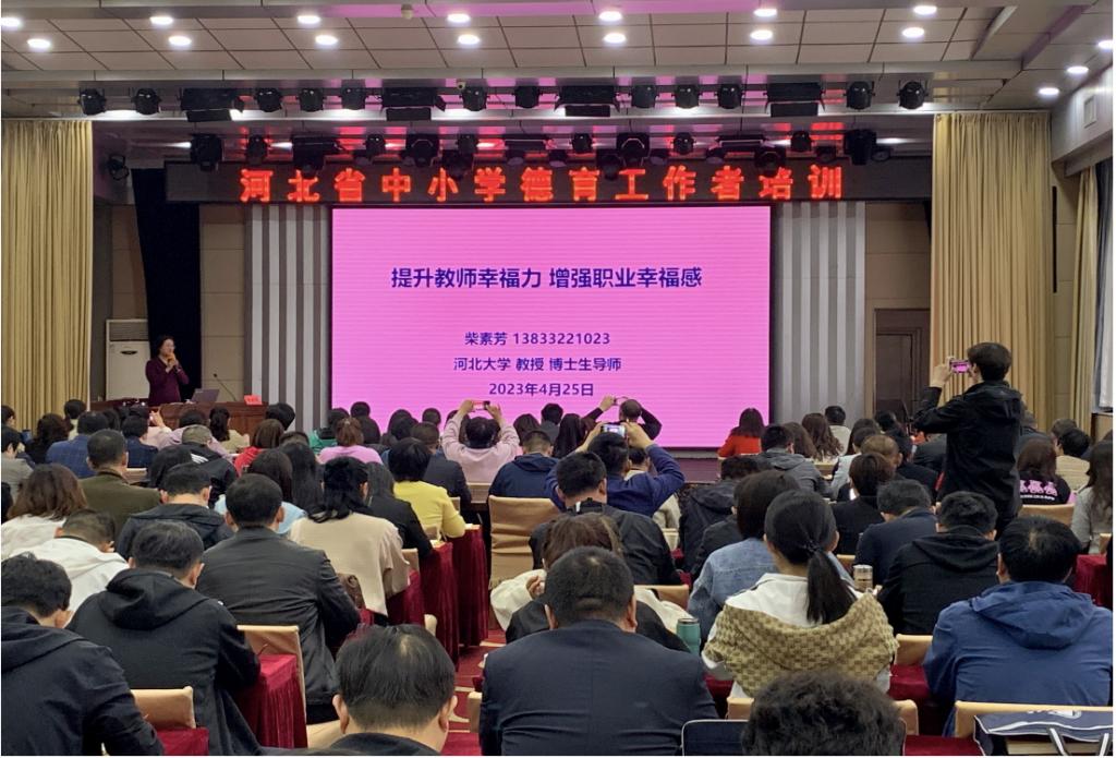 柴素芳教授应邀为河北省中小学德育工作者培训班作专题报告,有利于提高与会教师的师德水平和职业幸福感。与会教师纷纷表示:柴教授带来了一堂有高度、有深度、有温度的幸福课,对于提升自身幸福力、增强职业幸福感、做“六有”好老师发挥了积极的推动作用。