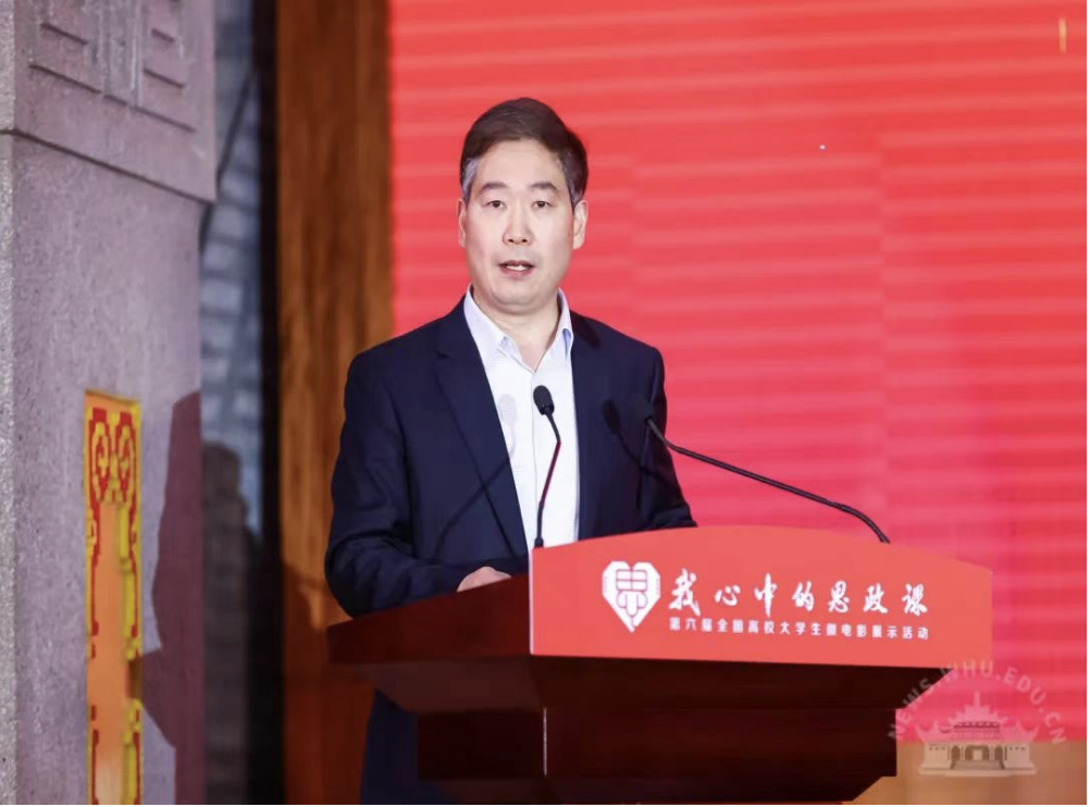 首先,教育部社会科学司副司长宋凌云、武汉大学党委副书记沈壮海致辞。沈壮海在致辞中指出,本届微电影大赛作品紧扣新时代主旋律,汇聚了广大青年大学生的时代之思,从新时代高校大学生的独特视角,以微电影的艺术形式呈现了思政课的教学成果,增强了思政课的艺术感染力,集中展现了广大青年学子志存高远、奋发有为的昂扬状态。